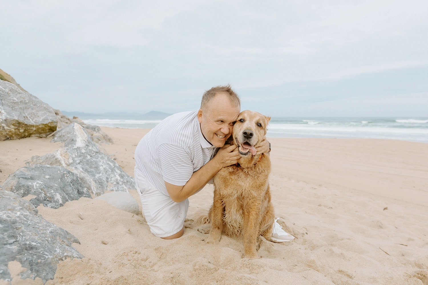 Ce Golden Retriever m’a prouvé qu’il n’y a pas besoin de parler pour se comprendre. La nature, la plage de Biarritz, une jolie lumière de début de journée et deux meilleurs amis du monde : la recette parfaite.